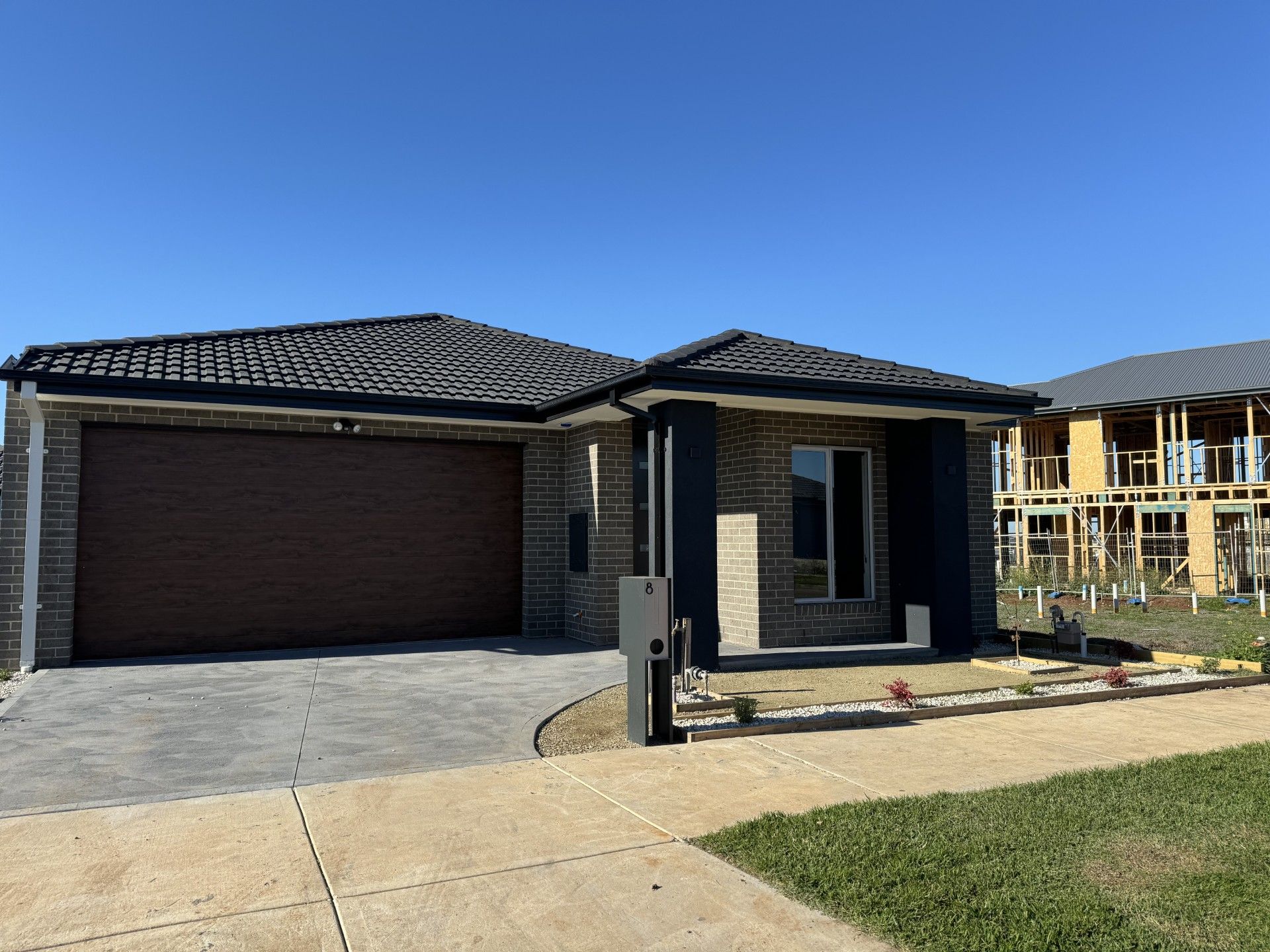 Introducing your brand-new dream home in the sought-after heart of Tarneit! This beautifully designed 3-bedroom, 2-bathroom residence combines modern living with premium finishes throughout. The spacious master suite boasts a luxurious ensuite with double sinks and a shower, offering a private retreat. Two additional generously-sized bedrooms, all featuring plush wool carpets, ensure comfort and style. The main bathroom includes a relaxing bathtub, ideal for unwinding after a busy day.